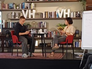 Žáci třídy 8.A Gymnázia a obchodní akademie Mariánské Lázně navštívili dne 26. září 2025 za pedagogického doprovodu Mgr. Ivany Milfaitové a Mgr. Ivy Svobodové Knihovnu Václava Havla. Studenti měli možnost zúčastnit se workshopu věnovaného životu prvního českého prezidenta a jeho divadelní hře Audience. Na něm si studenti vyzkoušeli několik kreativních i naučných aktivit. Společně s lektorkou Terezou se pět dobrovolníků podílelo na autentickém předvedení části divadelní hry. K závěru si žáci zkusili vytvořit absurdní dialogy podobné stylu Havlových her. Workshop měl u studentů velmi pozitivní zpětnou vazbu. O závěrečné zhodnocení jsme požádali Nikol Alaxinovou: ,,Exkurze byla skvělá zkušenost, nejvíc mě bavilo zkoušet si vlastní dialogy a hraní scén z Audience.“