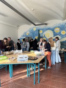Rádi bychom poděkovali všem, kteří se do akce zapojili – ať už přípravou a darováním zákusků, jejich zakoupením, nebo aktivní organizací celé události našimi účastníky programu DOFE. Poděkování patří také třídě 1.C za úklid studovny po skončení akce.